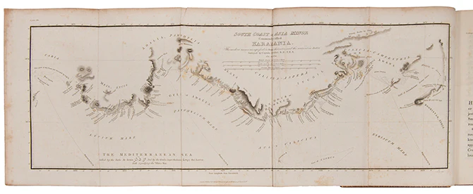 In 1810 Beaufort was appointed senior officer at Smyrna in command of the Frederickssteen; in August he began the survey of the south coast of Turkey, the first attempt of a description of this area. Beaufort identified 60 sites on the coast with ancient cities - 53 correctly.Second edition. 8vo, x, 309, [7] pp index, engraved frontispiece, five engraved plates and plans, one folding chart, contemporary calf, spine gilt, a very good example.