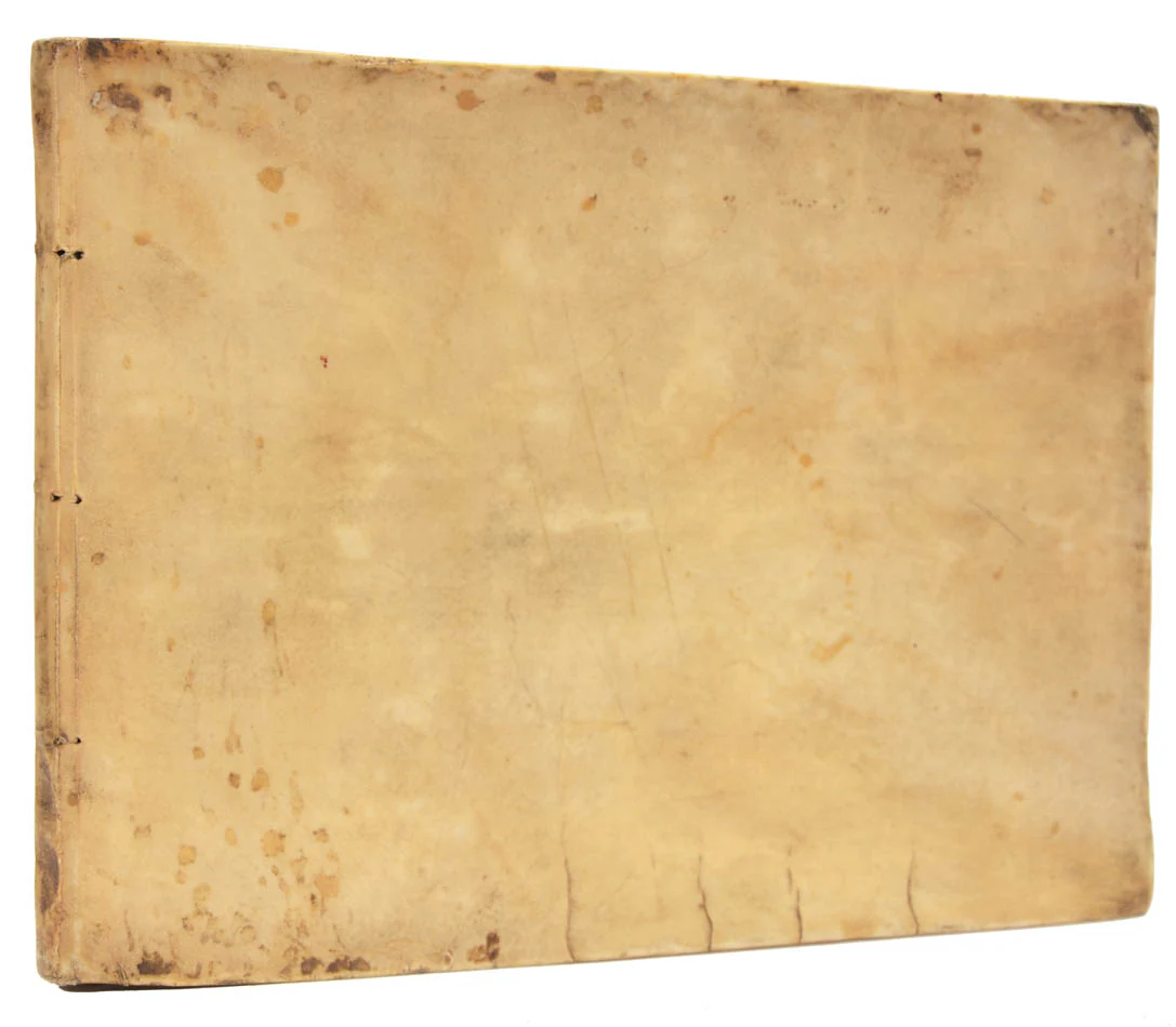 First Latin edition. Small oblong folio, [30]; [10] ff., engraved plate to title-page, 10 further plates & 5 maps, with initial letter and colophon; engraved plate to title-page, map of Bali, 24 coastal profiles and a woodcut showing a pair of emu-like birds, with initial letter. Contemporary vellum, slightly cockled, with some light soiling, some early underlining in the text, and neat ownership signature to title-page dated 1600.